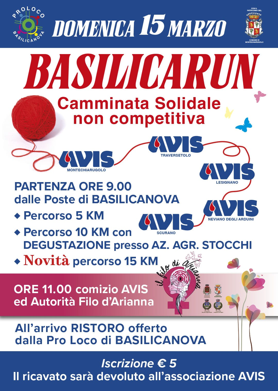 Domenica 15 marzo a Basilicanova si svolgerà la Basilica Run, camminata solidale non competitiva promossa dalla Pro Loco Basilicanova in collaborazione con le sezioni AVIS di Montechiarugolo, Traversetolo, Lesignano de’ Bagni, Neviano degli Arduini e Scurano.
